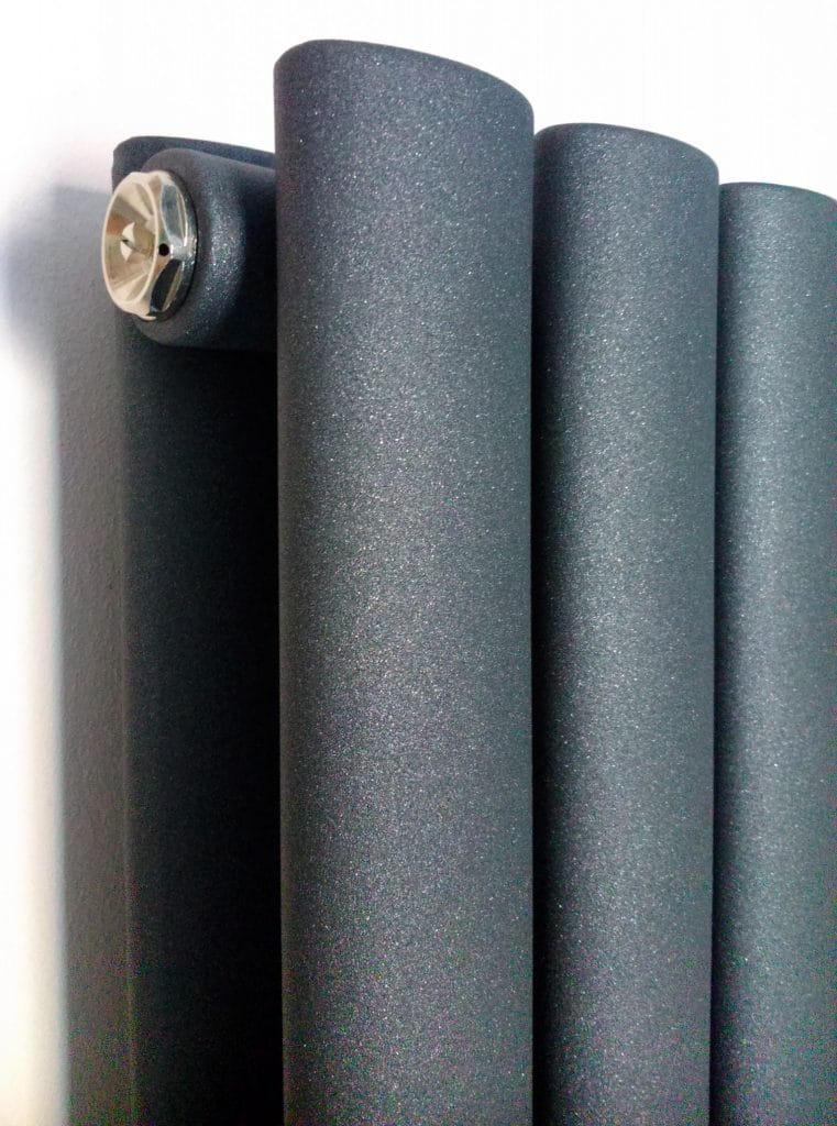 Kolor antracyt. Grzejnik dekoracyjny dostępny jest w standardowym kolorze białym i antracyt. Na zamówienie może być wykonany w innych kolorach z palety RAL, co pozwala dopasować go do aranżacji wnętrza.