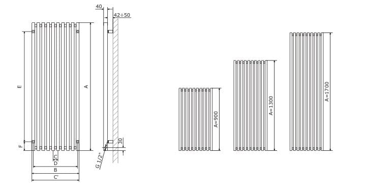 Grzejnik dekoracyjny pionowy 48x130 cm Terma Triga 1300x480