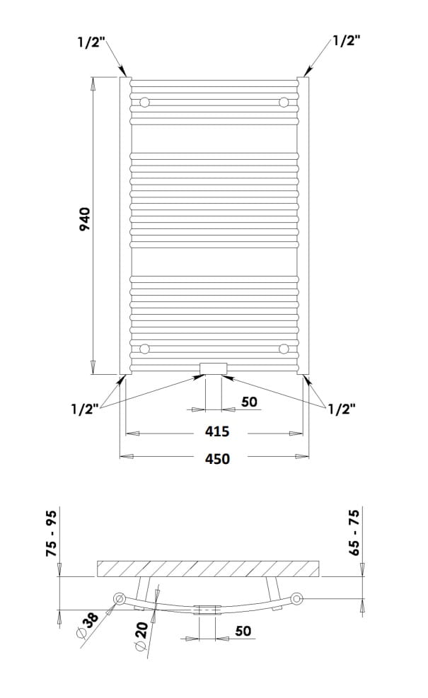 Grzejnik łazienkowy, pionowy 45x94 cm PMH Danby D1MS srebrny metalic