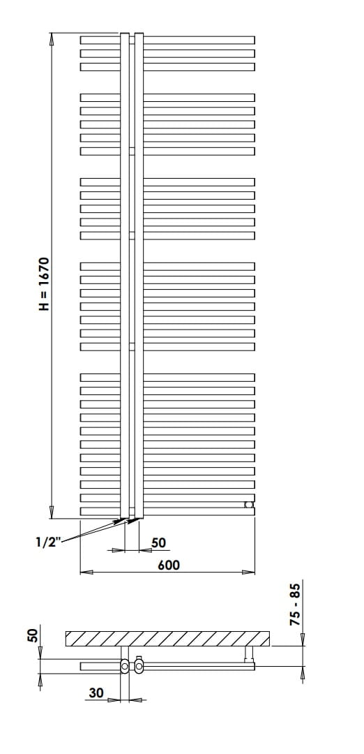 Łatwy montaż. Grzejnik dekoracyjny przeznaczony jest do montażu pionowego na ścianie. Standardowe podłączenie dolne centralne (rozstaw 50 mm) ułatwia estetyczną i schludną instalację. Do montażu należy osobno zakupić zawór, a w przypadku pracy w systemie mieszanym – również kompatybilną grzałkę elektryczną.