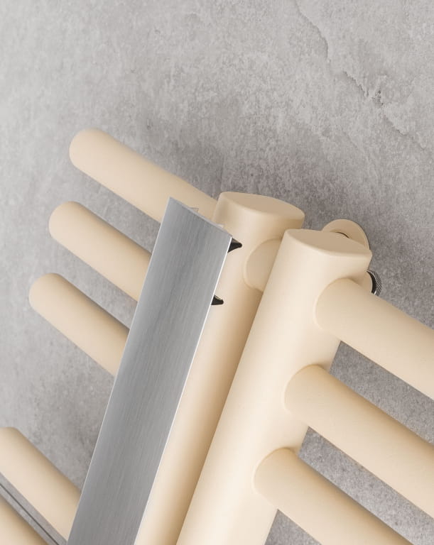 System mieszany. Grzejnik drabinkowy może pracować zarówno w instalacji centralnego ogrzewania, jak i w systemie mieszanym – po podłączeniu grzałki elektrycznej o mocy do 800 W. Dzięki wysokiej wydajności doskonale sprawdzi się w łazienkach lub przestrzeniach kąpielowych, zapewniając komfort cieplny przez cały rok.