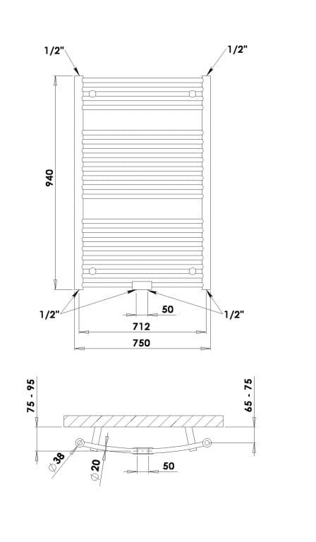 System mieszany. Grzejnik drabinkowy może pracować zarówno w instalacji C.O., jak i w trybie mieszanym – po zamontowaniu grzałki elektrycznej. To doskonałe rozwiązanie do łazienek, w których potrzebna jest większa moc grzewcza i wygoda użytkowania na co dzień. Zawory i grzałka elektryczna nie są dołączone – należy je dobrać osobno. Zaleca się zastosowanie zaworów termostatycznych oraz grzałki z regulacją temperatury.