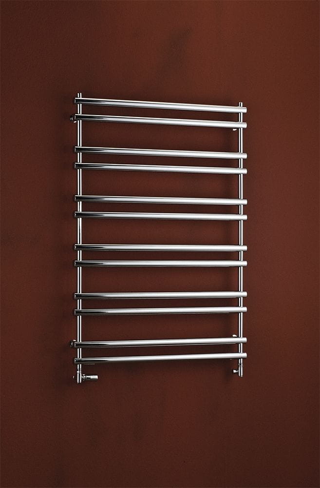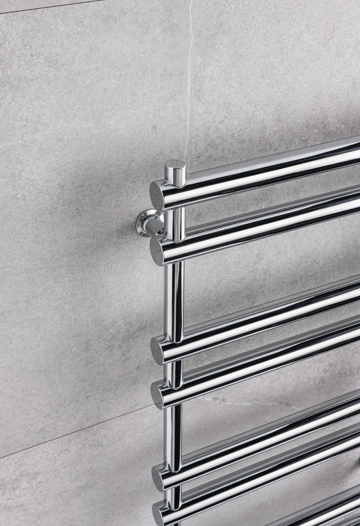 Zawieszanie ręczników na poziomych rurkach. Dzięki poziomym rurkom, ten chromowany grzejnik łazienkowy pozwala na wygodne zawieszanie i skuteczne suszenie ręczników oraz innych tekstyliów łazienkowych. To rozwiązanie idealne do codziennego użytku – łączy funkcję grzewczą i praktyczną.