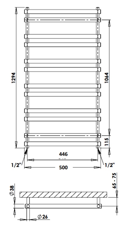 Montaż – dolne podłączenie i możliwość grzałki elektrycznej. Grzejnik posiada dolne podłączenie z rozstawem 50 mm, co ułatwia instalację w typowych systemach wodnych. Możliwość montażu grzałki elektrycznej o mocy do 600 W pozwala na użytkowanie grzejnika także poza sezonem grzewczym, w trybie mieszanym.