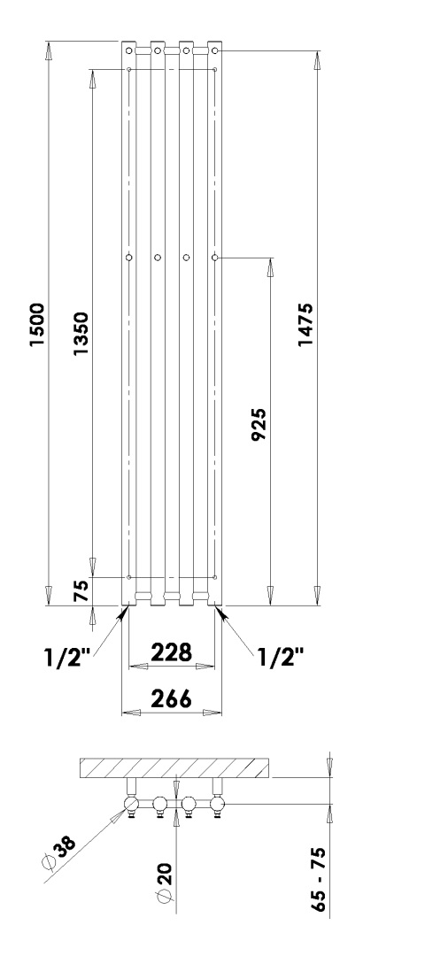Montaż – dwie opcje podłączenia. Grzejnik dekoracyjny pionowy przystosowany jest do montażu ściennego i oferuje dwie możliwości podłączenia: boczne w obu kolektorach lub po jednej stronie – w jeden kolektor. Takie rozwiązanie pozwala na dopasowanie do różnych instalacji i ułatwia estetyczne poprowadzenie rur. Grzejnik może pracować również w trybie mieszanym – po zamontowaniu grzałki elektrycznej (do kupienia osobno).