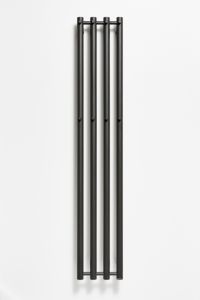 Design – proporcje, które przyciągają wzrok. Grzejnik pionowy rurowy 42x95 cm Rosendal to połączenie niskiej wysokości i zwiększonej szerokości, co nadaje mu bardziej horyzontalny, ale wciąż smukły wygląd. Jego industrialny charakter podkreśla wykończenie w czerni strukturalnej, które doskonale komponuje się z surowymi powierzchniami, betonem i jasnymi ścianami. Prosty układ poziomych rurek sprawia, że grzejnik wygląda lekko i nowocześnie.