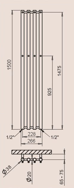 Montaż ścienny. Grzejnik dekoracyjny przeznaczony jest do montażu na ścianie. Standardowe podłączenie dolne umożliwia estetyczne podłączenie instalacji grzewczej. Zawory oraz grzałkę elektryczną należy dokupić oddzielnie. Grzejniki mogą być podłączone do wszystkich typów systemów centralnego ogrzewania.