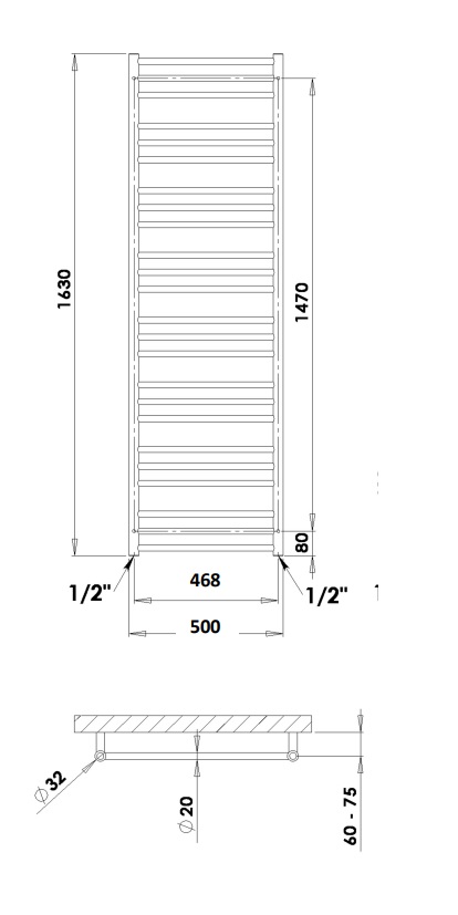 Podłączenie: dolne (rozstaw 50 mm) lub boczne (w jeden kolektor)zawory i grzałkę należy dokupić osobno
