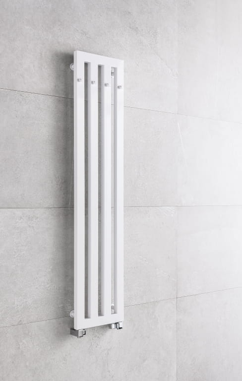 Montaż ścienny, podłączenie boczne. Grzejnik pionowy przeznaczony do montażu pionowego, z możliwością wyboru bocznego podłączenia – po lewej lub prawej stronie. Umożliwia to wygodne dopasowanie do układu instalacji. Do montażu wymagany jest osobny zakup zaworu, a w przypadku systemu mieszanego – także kompatybilnej grzałki elektrycznej.