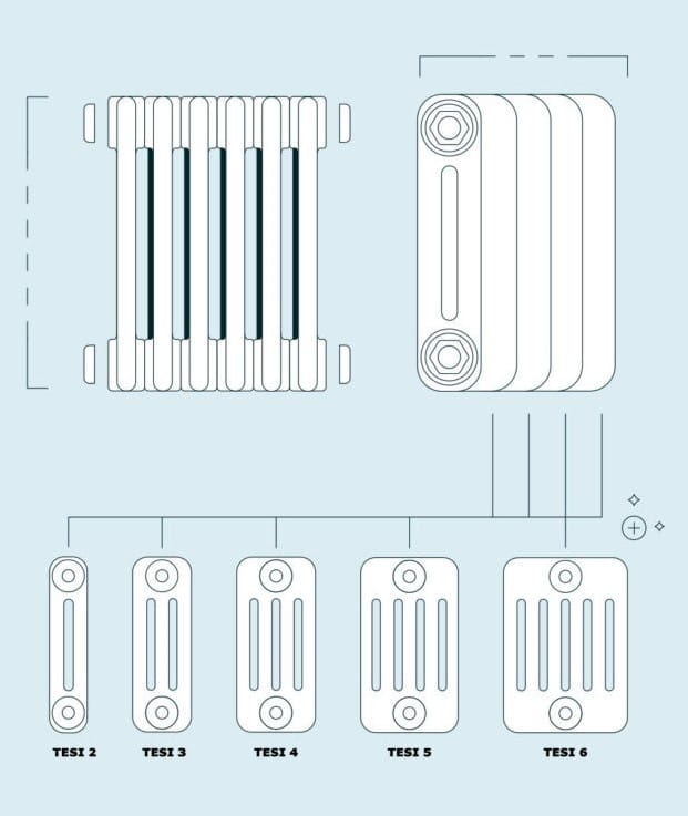 Materiały najwyższej jakości. Grzejnik Tesi3 został wykonany z okrągłych, stalowych rur o średnicy 25 mm (12 elementów w jednym rzędzie) rozmieszczonych w trzech rzędach. Wykorzystana technika laserowa powoduje, że rurki posiadają idealną formę bez widocznych spojeń.