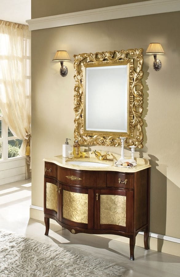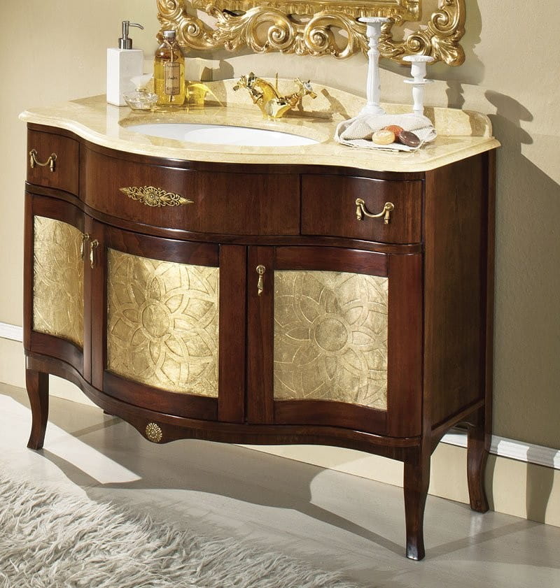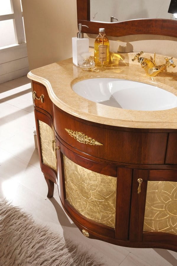 IRIS BIC 110-S szafka z umywalką, szer. 110cm, marmur Silvia Oro, noce/oro