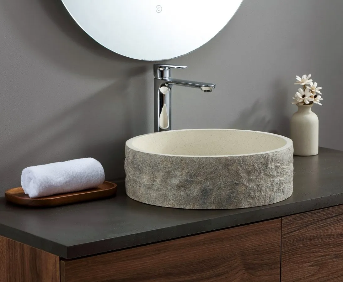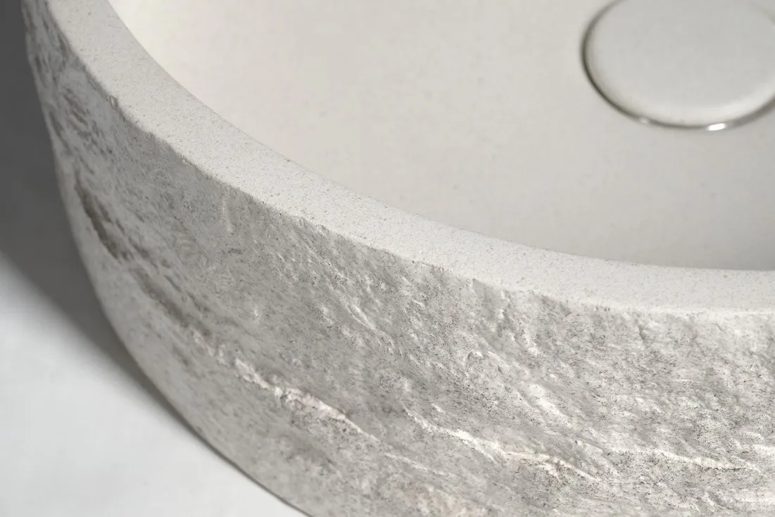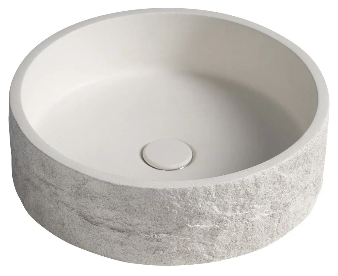 ISPIR betonowa umywalka z odpływem, 40cm, biały piaskowiec