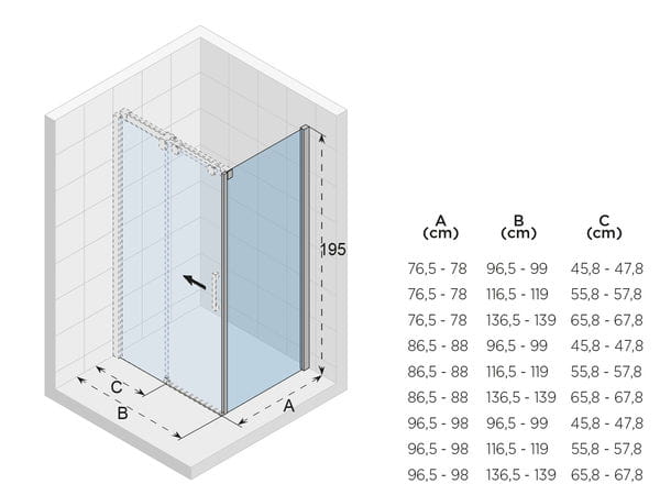 - szerokość ścianki z drzwiami 136,5-139 cm
