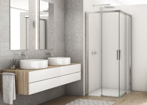 Drzwi rozsuwane. Drzwi prysznicowe są rozsuwane, z narożnym wejściem.