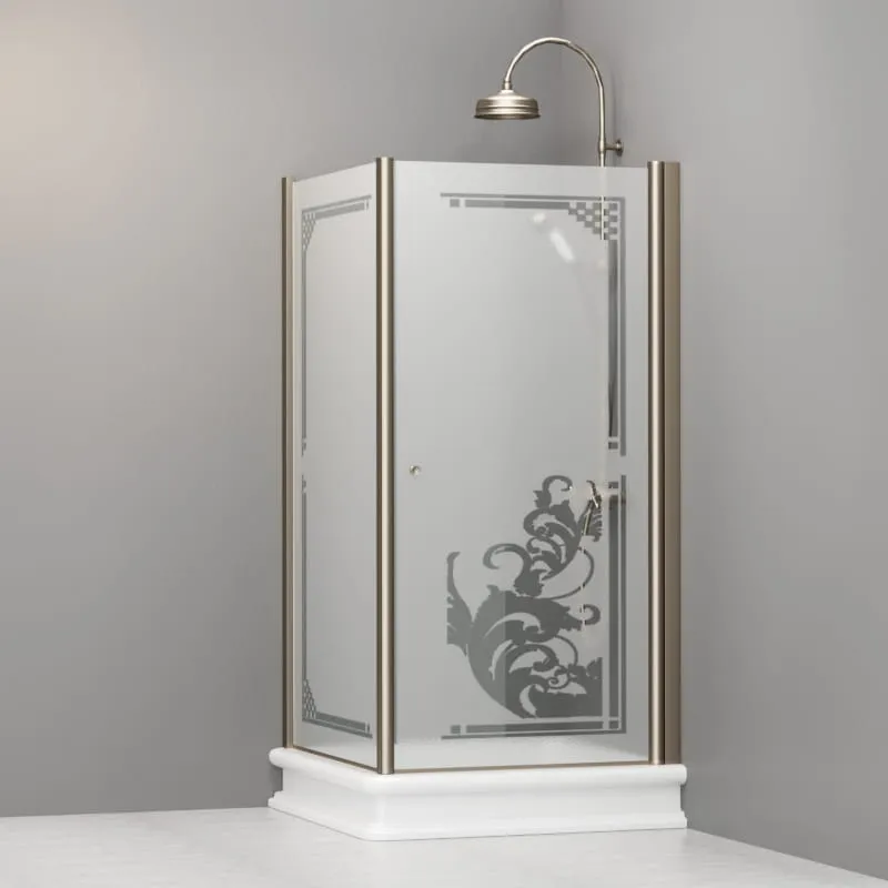Kabina prysznicowa Retro 100x100 cm z piaskowanym szkłem, ornamentem i profilami w kolorze bronzo Kerasan