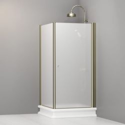 Kabina prysznicowa Retro 100x100 cm ze złotymi profilami i piaskowanym szkłem Kerasan 9150S1 lewa