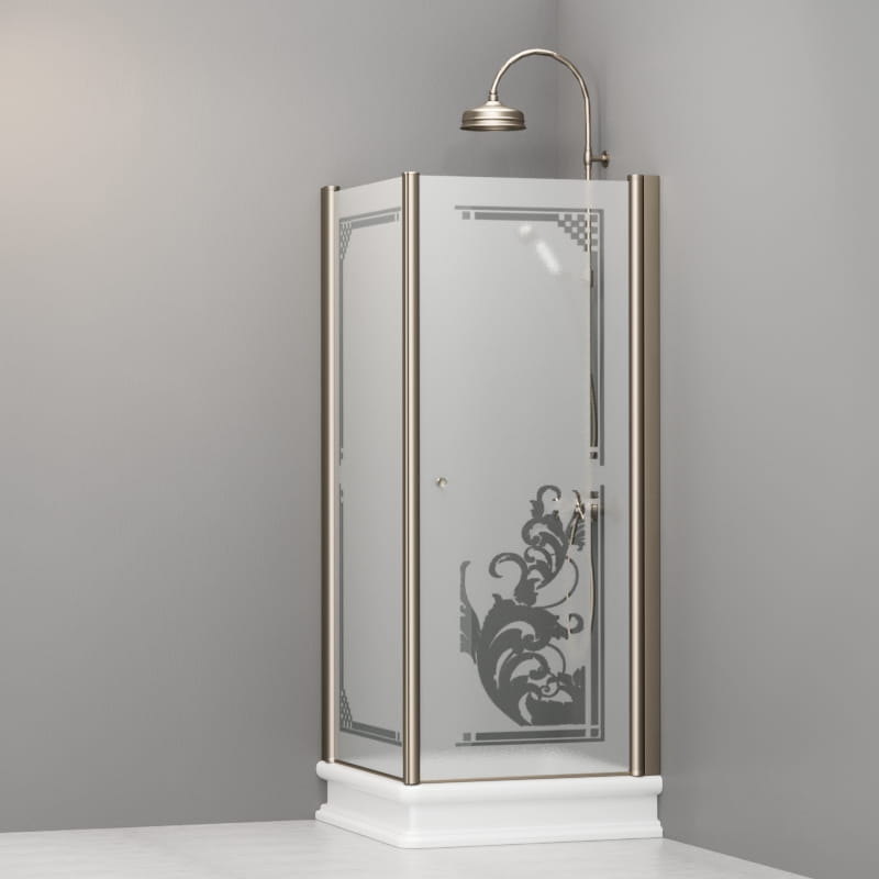 Kabina prysznicowa Retro 80x80 cm z piaskowanym szkłem, ornamentem i profilami bronzo Kerasan 9161P3