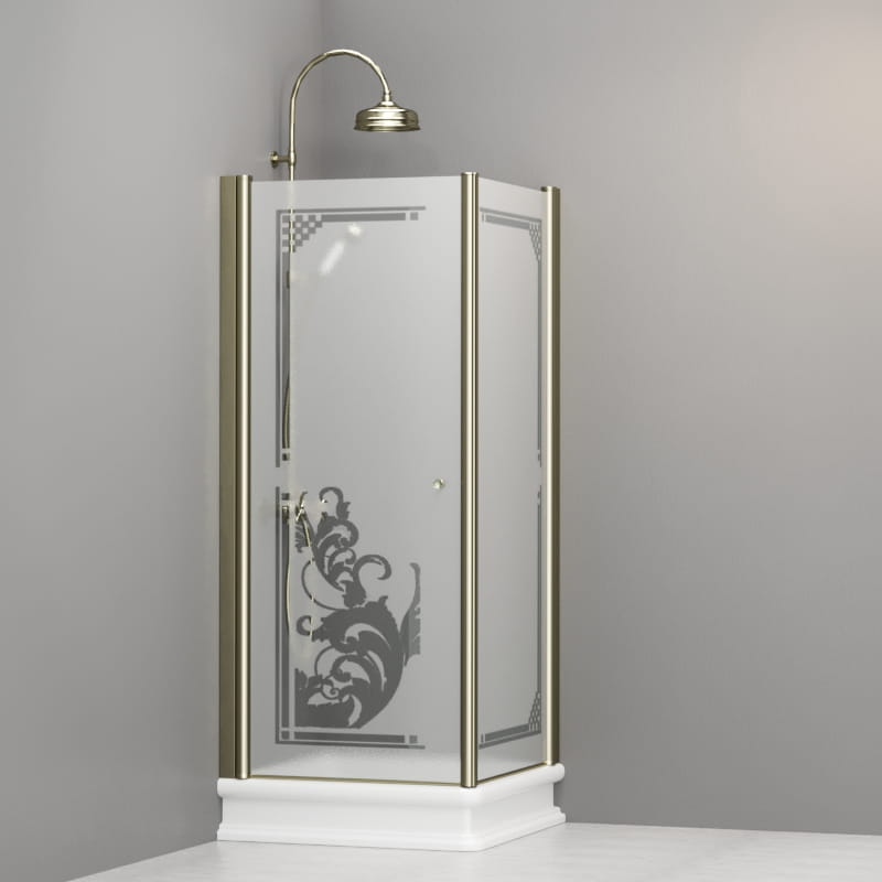 Kabina prysznicowa Retro 80x80 cm z piaskowanym szkłem i ornamentem Kerasan 9160P1 złoty