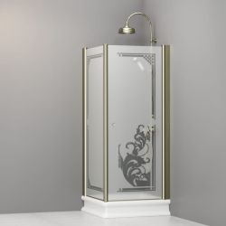 KerasanKabina prysznicowa Retro 80x80 cm z piaskowanym szkłem, ornamentem i złotymi profilami Kerasan 9160P1