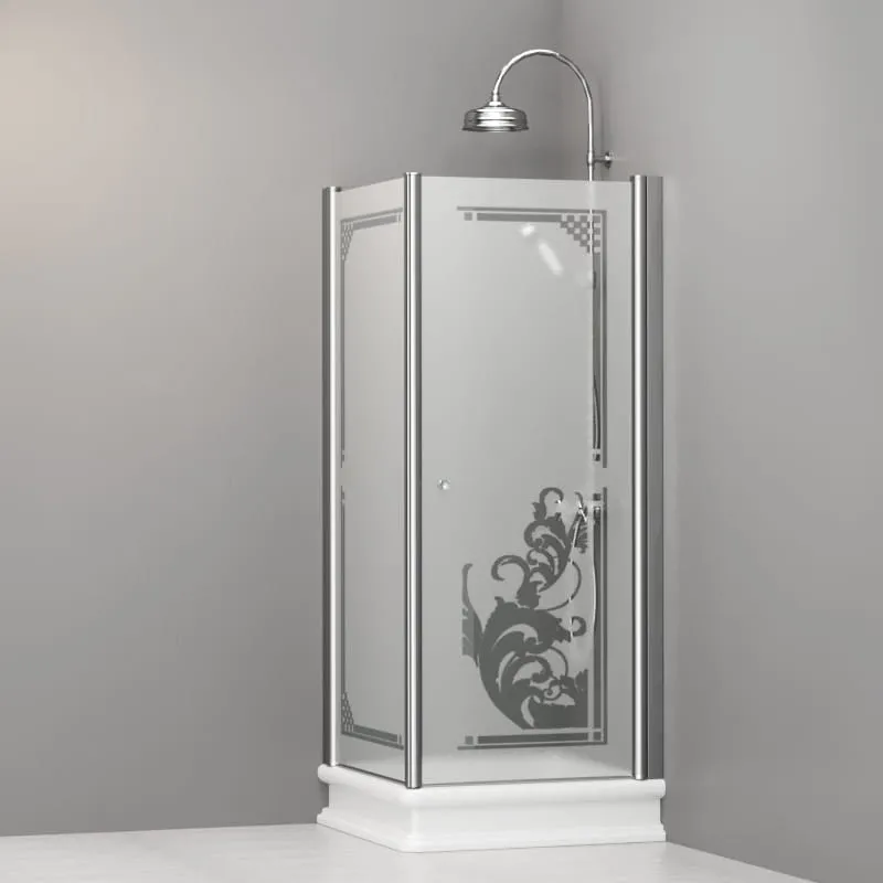 Kabina prysznicowa Retro 80x80 cm z piaskowanym szkłem i ornamentem Kerasan 9161P0 chrom
