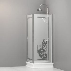 Kabina prysznicowa Retro 80x80 cm z piaskowanym szkłem i ornamentem Kerasan chrom 9160P0