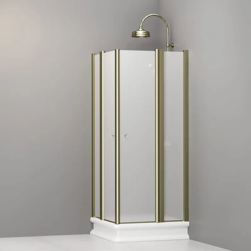 Kabina prysznicowa kwadratowa Retro 80x80 cm z piaskowanym szkłem i złotymi profilami Kerasan