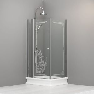 Kabina prysznicowa Retro 80x96 cm z piaskowanym ornamentem chrom 9141N0 prawa