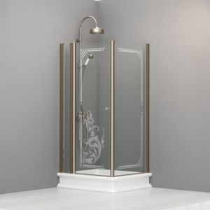 Kabina prysznicowa Retro 80x96 cm z piaskowanym ornamentem i profilami bronzo 9141N3 prawa