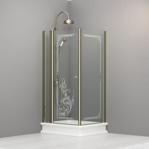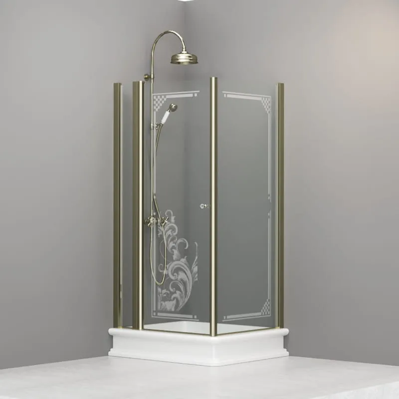 Kabina prysznicowa Retro 80x96 cm z piaskowanym ornamentem i złotymi profilami 9141N1 prawa