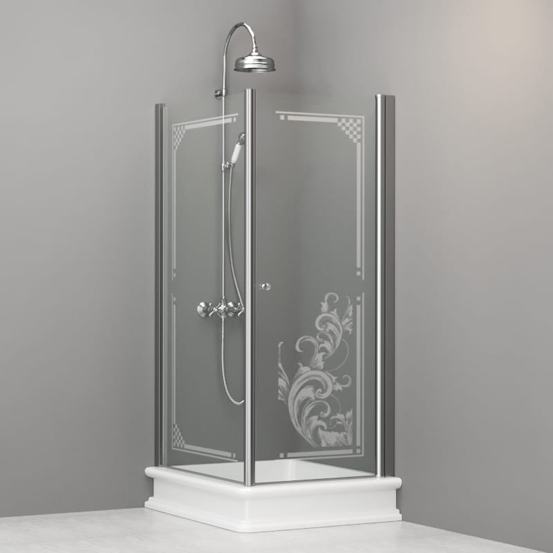 Kabina prysznicowa Retro 80x96 cm z piaskowanym ornamentem chrom 9143N0 lewa