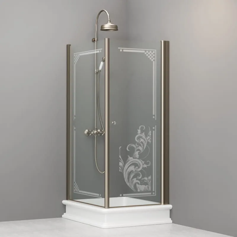 Kabina prysznicowa Retro 80x96 cm z piaskowanym ornamentem i profilami w kolorze bronzo 9143N3 lewa