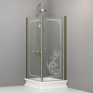 Kabina prysznicowa Retro 80x96 cm z piaskowanym ornamentem i złotymi profilami 9143N1 lewa