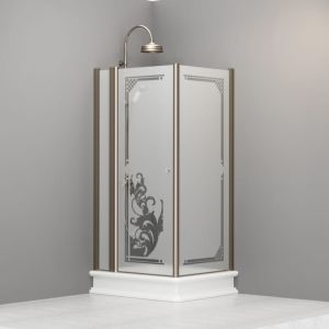 Kabina prysznicowa prostokątna 80x96 cm w stylu Retro z ornamentem na piaskowanym szkle i profilami bronzo Kerasan