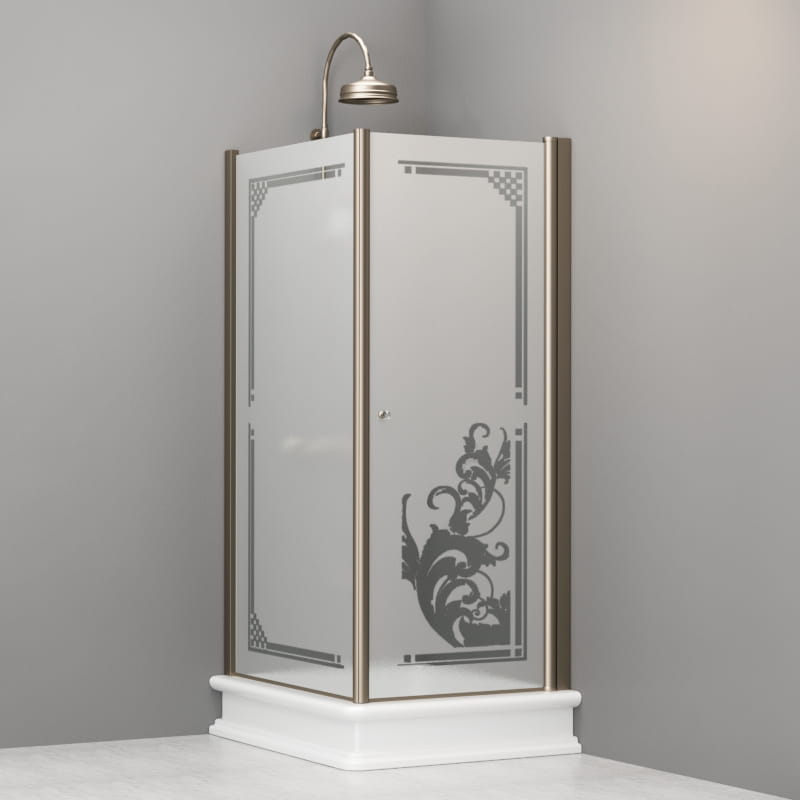 Kabina prysznicowa prostokątna 80x96 cm w stylu Retro z ornamentem na piaskowanym szkle i profilami w kolorze bronzo Kerasan