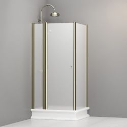 Kabina prysznicowa Retro 80x96 cm prostokątna z piaskowanym szkłem i złotymi profilami Kerasan 9141S1 prawa