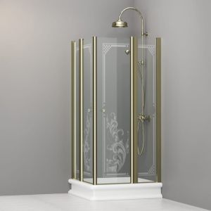 KerasanKabina prysznicowa Retro 80x80 cm z piaskowanym ornamentem i złotymi profilami Kerasan 9161N1