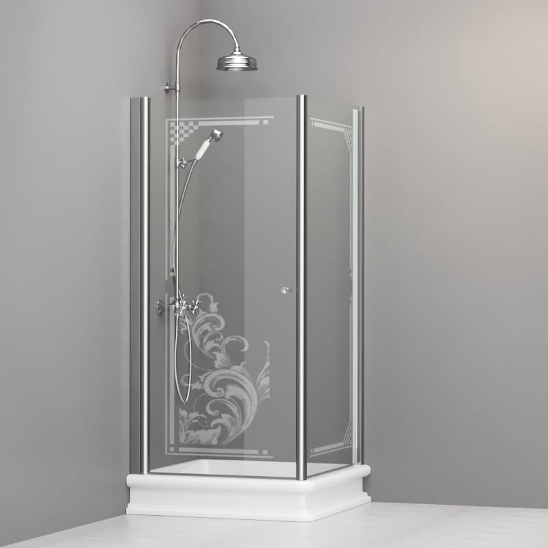 Kabina prysznicowa Retro 90x90 cm z piaskowanym ornamentem Kerasan chrom 9146N0 prawa