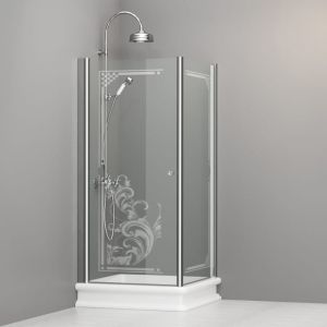 Kabina prysznicowa Retro 90x90 cm z piaskowanym ornamentem Kerasan
