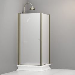 Kabina prysznicowa Retro 90x90 cm z piaskowanym szkłem i złotymi profilami Kerasan