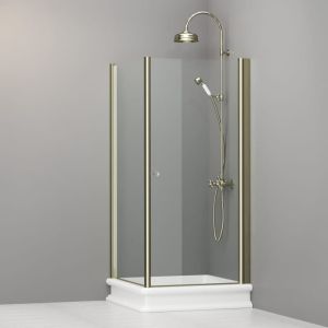 Kabina prysznicowa w stylu Retro kwadratowa 90x90 cm ze złotymi profilami Kerasan