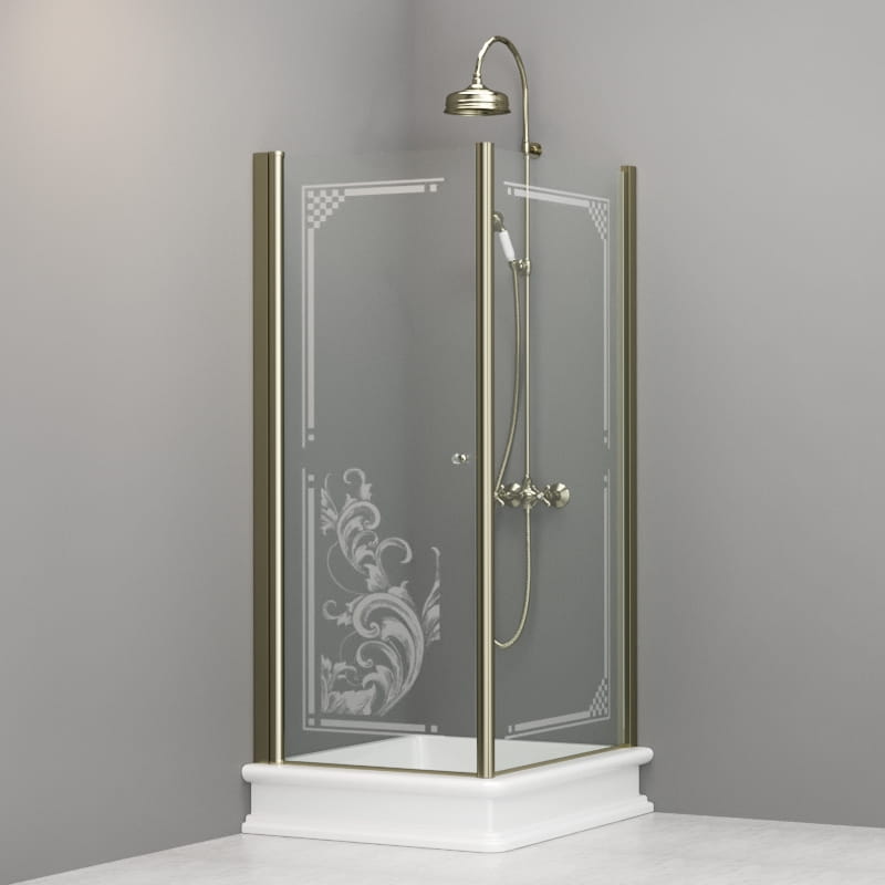 Kabina prysznicowa prostokątna 80x96 cm w stylu Retro z piaskowanym ornamentem na szkle i złotymi profilami Kerasan