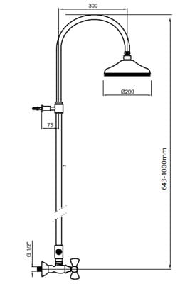 Montaż: ścienny. Zestaw prysznicowy Retro przeznaczony do montażu na ścianie, z możliwością regulacji wysokości, pasuje do standardowych przyłączy wody.