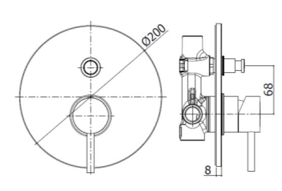 - bateria dwudrożna Paffoni Light przełączanie na deszczownicą i na słuchawkę