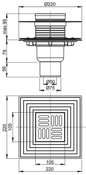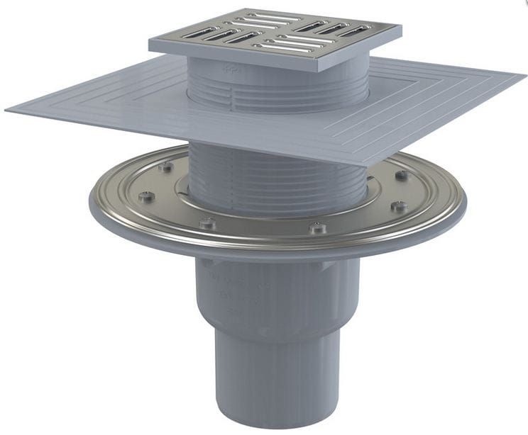 Kratka ściekowa podłogowa ALCA APV2324 wykonana z wysokiej jakości stali nierdzewnej do wykorzystania w pomieszczeniach, gdzie przewidujemy okresowe wykorzystanie kratki np. piwnicach, pralniach, kotłowniach. Mechaniczne zamknięcie i słup wody zapobiegają przenikaniu zapachów z kanalizacji. W skład zestawu wchodzą: korpus odpływ pionowy Ø50/75 mm, gardziel kratki 105×105 mm, kratka wlotowa ze stali nierdzewnej, syfon kombinowany SMART, kołnierz ze stali nierdzewnej + zestaw montażowy, kołnierz 2. poziom izolacji wewnętrzny Ø105 mm, zestaw uszczelniający.