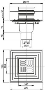 Kratka ściekowa podłogowa do okresowego wykorzystania 10,5 x 10,5 cm z odpływem pionowym Alcaplast APV2324
