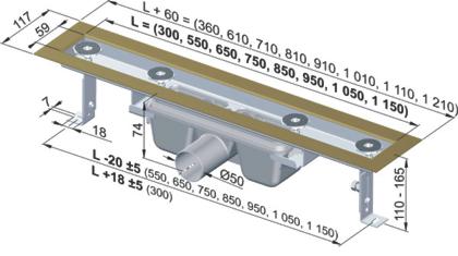 - odpływ liniowy z kołnierzem do wypełnienia płytkami, kamieniem naturalnym lub drewnem wodoodpornym
