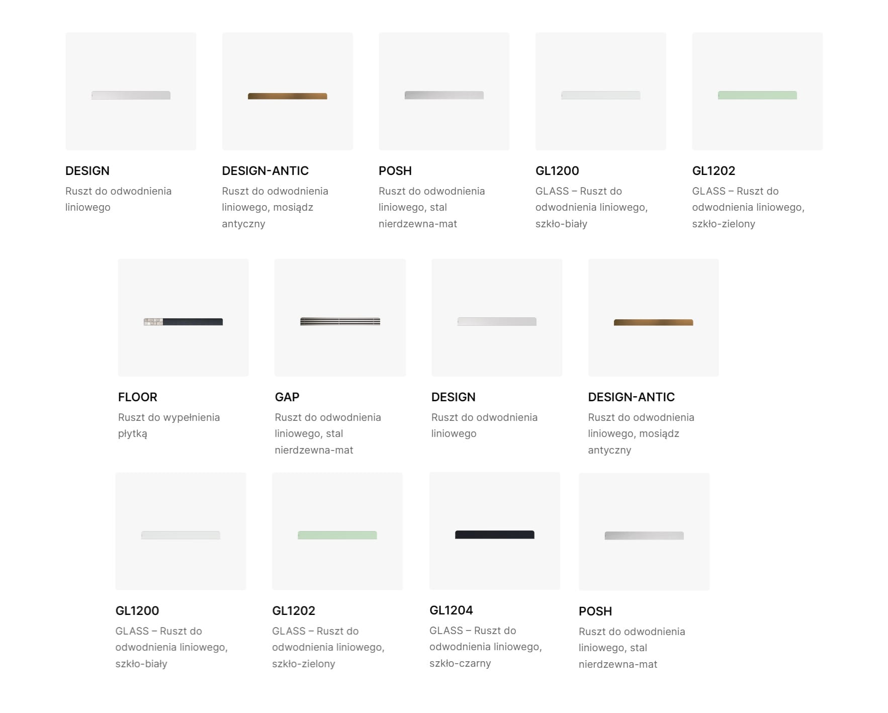 - odpływ liniowy ze stali nierdzewnej (uszlachetniony materiał trawieniem i pasywacją, elektrochemicznie polerowany)
