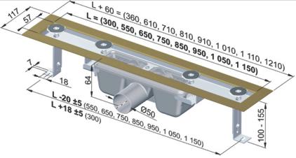 Wyposażenie: W komplecie z odpływem liniowym znajduje się dwukomorowy syfon (połączony z odpływem na stałe), zestaw montażowy, samoprzylepna taśma uszczelniająca, pokrywa instalacyjna, zestaw nóżek, ozdobny ruszt Posh z matowej stali nierdzewnej.