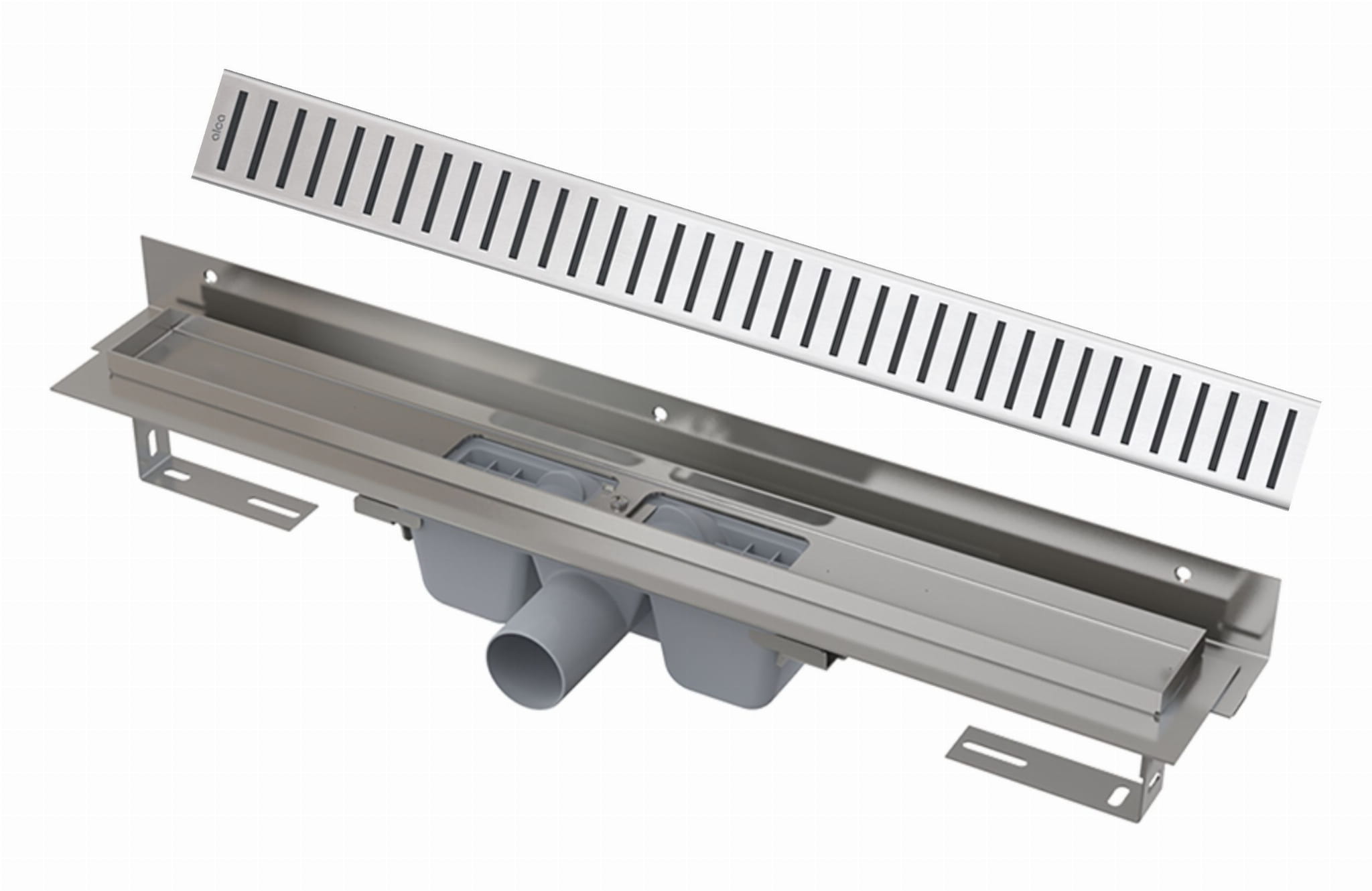 Wydajny odpływ ponad 60 l/min. Odpływ liniowy Alcadrain wyposażony jest w dwukomorowy syfon, który pozwala w szybki sposób pozbyć się wody z przestrzeni prysznicowej. Oferowany model posiada przepływ 60-68 l/min.