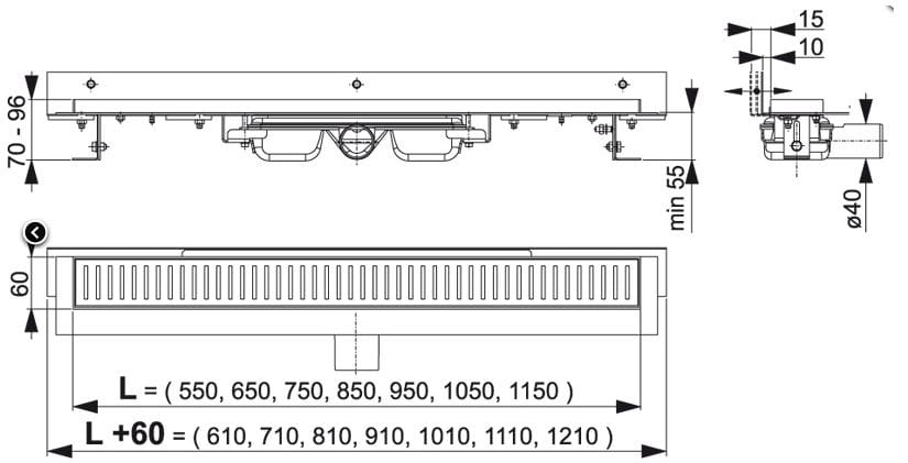 Odpływ z bezbarierowym przejściem! Odpływ liniowy zaprojektowany jest do łazienek, w których z powodu ograniczeń w grubości podłogi niemożliwe jest zastosowanie odwodnienia o standardowej wysokości. Odpływ nie wystaje ponad podłogę, dlatego świetnie sprawdzi się również w łazienkach dla osób niepełnosprawnych i starszych. Odpływ nie stanowi barier w poruszaniu się. Odpływ posiada regulowaną wysokość (od 65 mm).